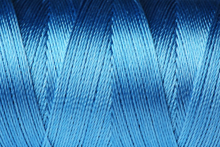 Multicolor sewing threads on a blue background with a copy space for text, concept of sewing threads