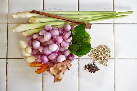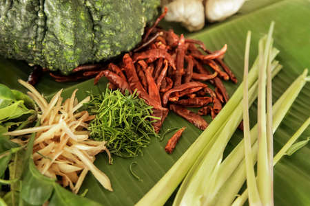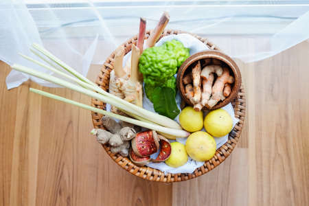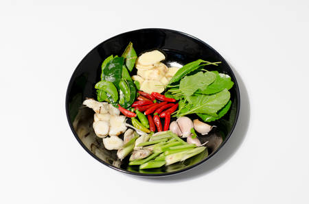 Herb ingredient of Tom Yum spicy soup Traditional Thai food cuisine.