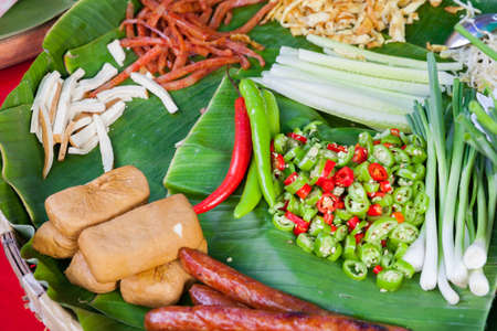 Fresh banana blossom with spring onion for side dish of Pad thai