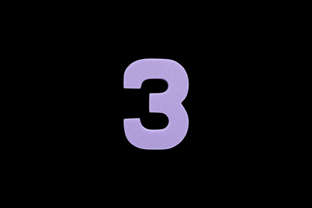 Arabic number 3 symbol of sponge rubber isolated on black background