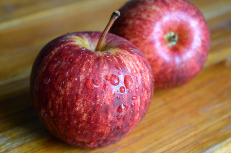 Fresh apple on wooden decks. Fruit, citrus table. Color