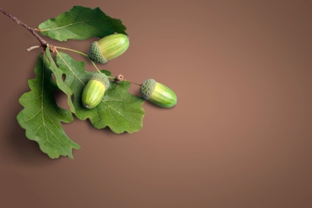 Fresh green acorns on background