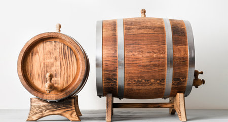 Close-up of used American oak barrel after aging bourbonJanuary 2024