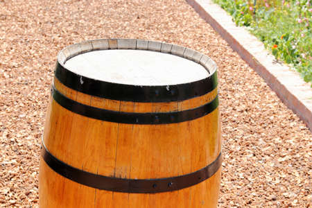 Old wooden barrel for wine . Medieval Town Wooden Decor