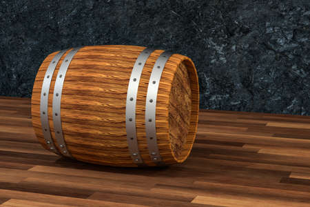 Wooden winery barrel with dark rust background, 3d rendering.