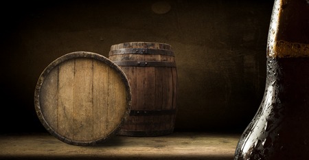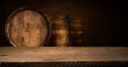 Wooden barrels on dark background