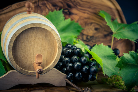 wine grapes on olive wood