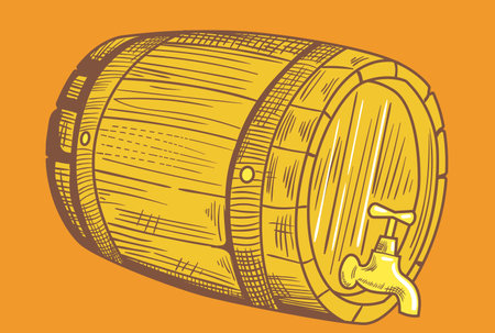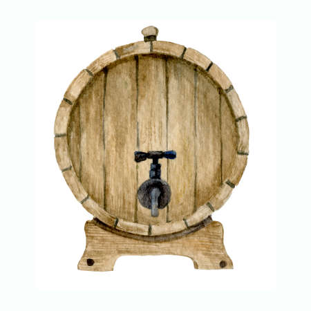 Watercolor illustration of wooden Beer Barrel for Octoberfest. Hand drawn sketch for October fest on white isolated background. Storage of ale or wine