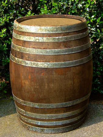 Old wooden barrel for wine . Medieval Town Wooden Decor