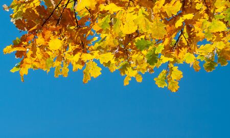 oak branches in autumn. bright foliage in the sun. autumn landscape, nature background