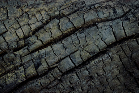 Close-up of charred wood, texture revealed with dark tones, a natural, abstract display