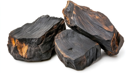 This image features natural charcoal pieces on a clean white background, ideal for depicting organic beauty, wellness practices, and sustainable living concepts.