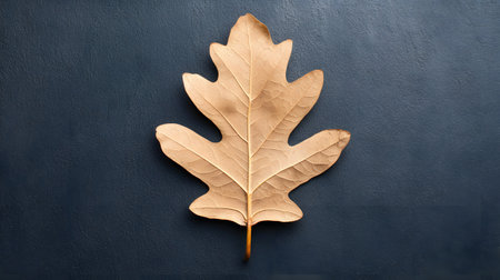 A solitary, dry oak leaf rests against a dark, textured background, symbolizing the beauty of autumn. Its intricate veins tell a story of seasons past.