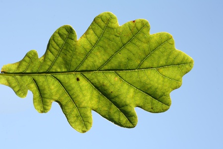A sunlit portrait of a single Oak, photographed outdoors on a clear, breezy day. Fresh, crisp air renders vivid detail in the leave veins glowing with gentle backlight. The background falls into a soft natural bokeh of greenery, colors truetolife, organic beauty in pure sunlight.