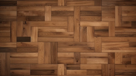 Top view of a parquet wooden floor with intricate geometric patterns, offering a timeless and stylish background