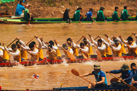 Phitsanulok / Thailand - 09 16 2018 :The traditional Longboat race in Nan River