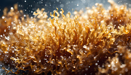 Close-up of vibrant yellow edible seaweed glistening in the sunlight