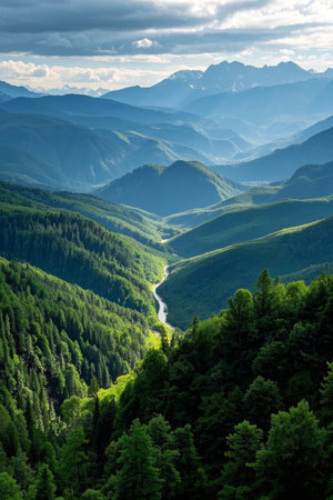 Valley rivers and dense forest landscape