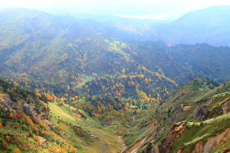 Mount Kurodake view from cable car in Daisetsuzan National Park, Hokkaido, Japan.