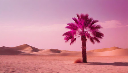 magenta palm tree amidst desert creative minimalistic surreal background ai
