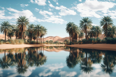 AI Generated. Palm Trees Reflecting in a Still Desert Oasis Lake