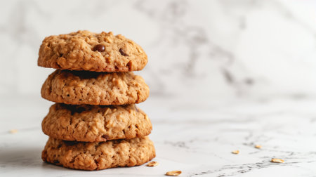 Stack of oatmeal cookies with textured surface, close-up. Homemade dessert and baking concept