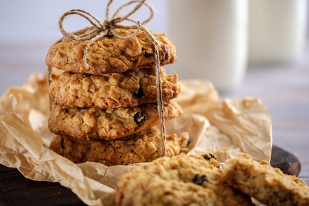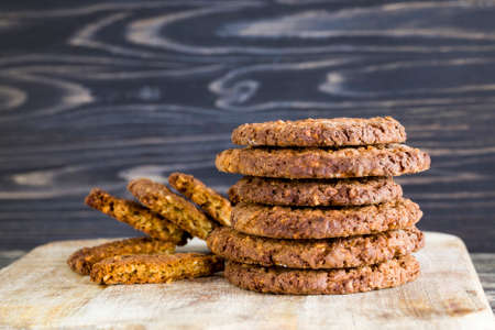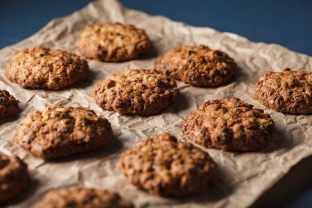 Oatmeal cookies on a dark background. Selective focus. Toned.
