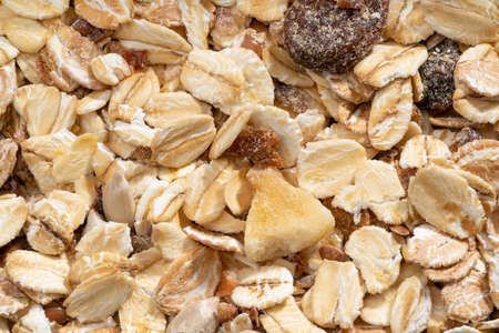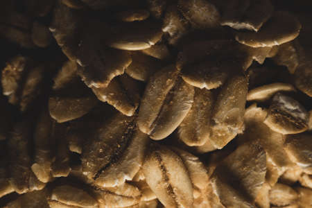 Dry oatmeal as a background texture. Copy, empty space for text.