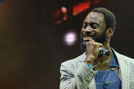 DNIPRO, UKRAINE - SEPTEMBER 11, 2016: Jazz vocalist and leader of the jazz band “The Shakes†Michael Mwenso performes at the festival Jazz on the Dnieper