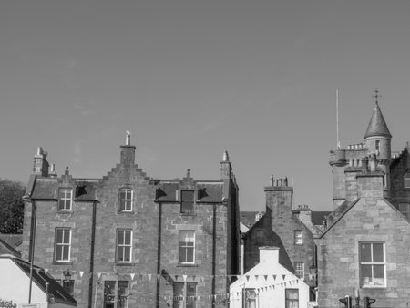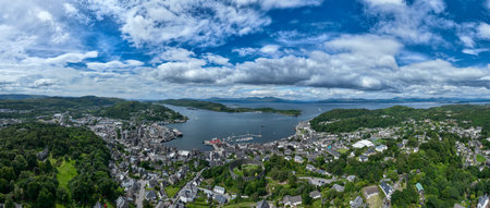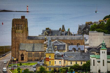 SCOTLAND, UNITED KINGDOM - MAY 30, 2019: Heart of Oban city top view. Oban is popular resort city in the west of Scotland.