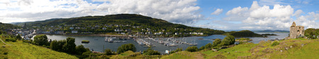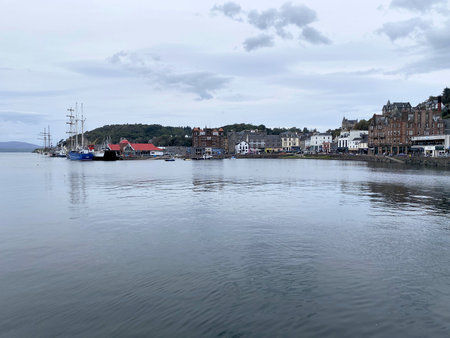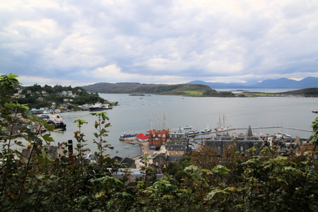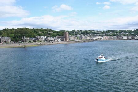 OBAN, SCOTLAND - JULY 19, 2009: The harbour and town of Oban on the west coast of Scotland, seen from the ferry going to Mull.