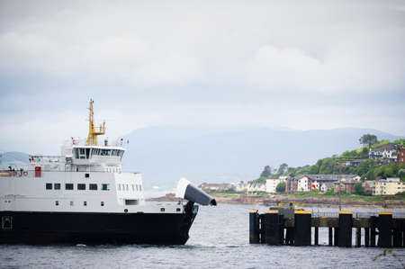 Ferry ship arriving at Scottish town of Wemyss Bay