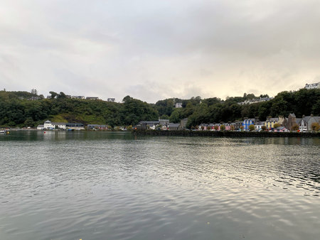 City landscape of Portree in the morning with a cloudy sky, Isle of Skye, Scotland, United Kingdom
