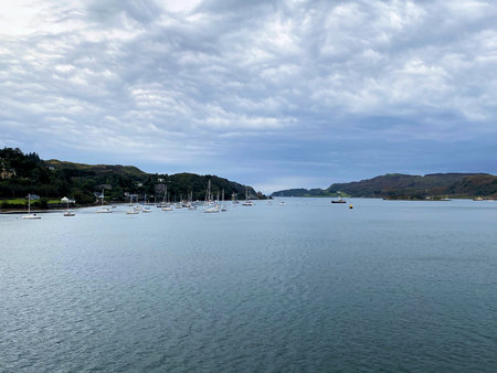 Scenic view of the Kyle Rhea, a strait splitting Skye from the Scottish mainland near Kylerhea village on the east coast of the Isle of Skye, in the Scottish Highlands