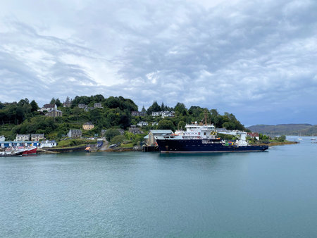 Ullapool, Scotland - August 15, 2010: View of the fishing port of Ullapool in the Highlands in Scotland, United Kingdom