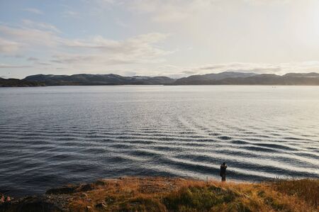 Finnmark, Norway - 26 July, 2017: View of the fishing boat on the norwegian coastline
