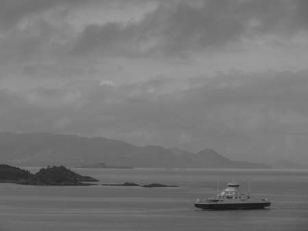 Historic sailing ship in the Norway fjords near bergen. Sea vessel.