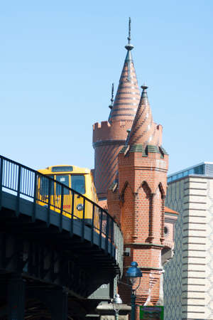 Famous oberbaumbruecke bridge with subway on a sunny day in Berlin, Germany