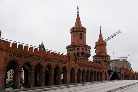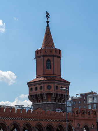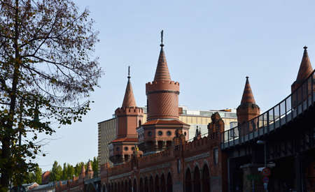 Towers of Oberbaum Bridge. This is a two-story bridge crossing the Berlin River Spree, considered one of the city landmarks in Berlin, Germany.