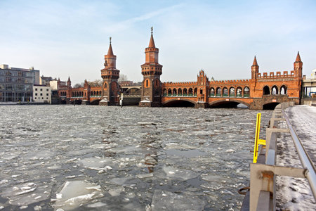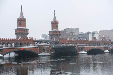Oberbaum bridge (Oberbaumbrücke) in Berlin, germany during winter