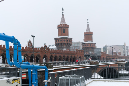 Oberbaum bridge (Oberbaumbuecke) in Berlin, germany during winter