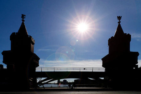 The Oberbaum Bridge in Berlin in the backlight