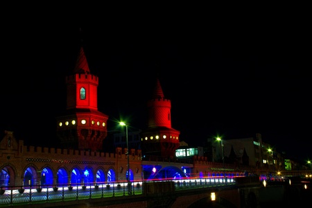 berlin oberbaumbruecke bridge by night with vibrant colors and long time exposure