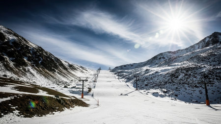 Ski lifts durings bright winter day