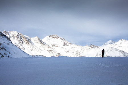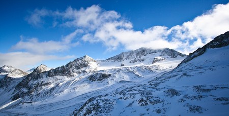 Winter scenery at Hintertux glacier in Alps mountains.
