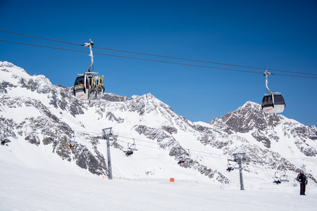 Gondola ski lift and piste in Alpine ski resort in Obergurgl Hochgurgl in Tirol, Austria