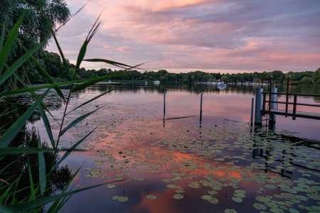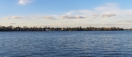 wideangle panorama photo of Muggelsee and Friedrichshagen south east Berlin