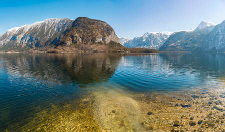 Crystal clear mountain lake in Alps, Hallstatt, Austria
