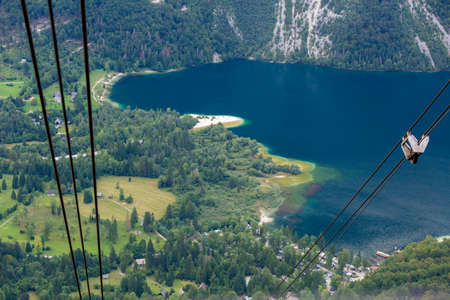 View from the Vogel ski resort mountains in Slovenian Julian Alps looking at Bohinj lake