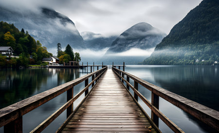 Foggy morning at Hallstatt lake, Austria. Long exposure